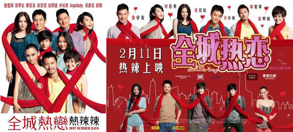 因為票房意外的好,所以今年又推出的《全球熱戀》(就是現正上映),更是重資打造!(拍攝成本是《全城》的三倍)然而老實說這兩部電影性質並不相同,大明星砍一半、故事更為薄弱(或說陽春),更加考驗了大明星的演技。而我覺得《全城》比《全球》好看,原因也在於此:《全城》的明星光環成功地蓋滿電影裡的所有破綻;然而《全球》裡熱戀的那三對戀人,對我來說,只有劉若英與郭富城通過演技的考驗(也就是不到一半)。所以雖然在《全球》裡頭,劉若英的表現是更好的,但是除此之外……嗯,就請大家專注在拍得如詩如畫的環境與桂綸鎂和楊穎的美麗臉蛋上面吧。