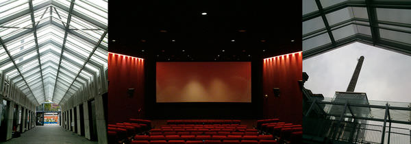 (左圖:售票台。觀賞完電影之後的出口、是讓你看見一片綠地、並走上一條會時光錯亂的光廊上!)